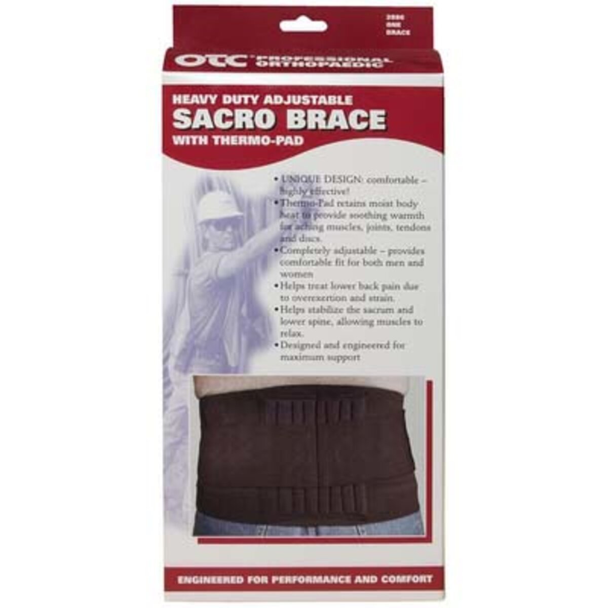 The Heavy Duty Sacro Brace has a unique construction to provide optimum support and comfort to the sacrum and the lower spine. The adjustable tapered design allows it to conform to effectively support virtually every adult figure type, male or female. The removable Thermo-Pad provides added warmth for aching muscles, joints, tendons and discs that so often accompany low back disorders.