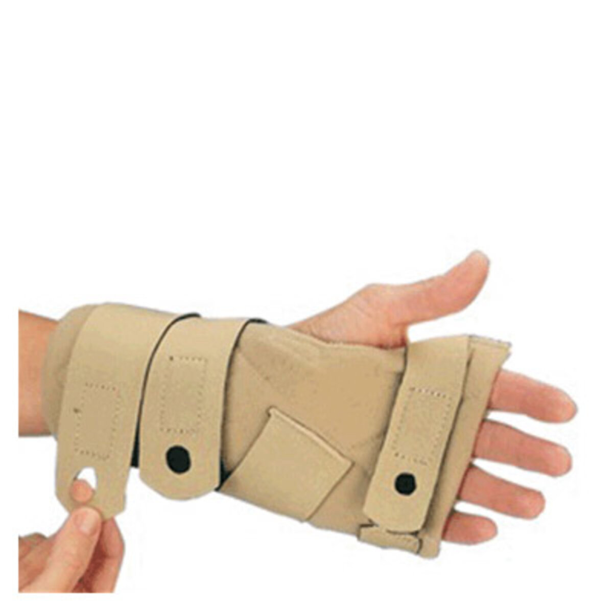 - Neoprene straps with finger holes facilitate splint application and strap adjustment
