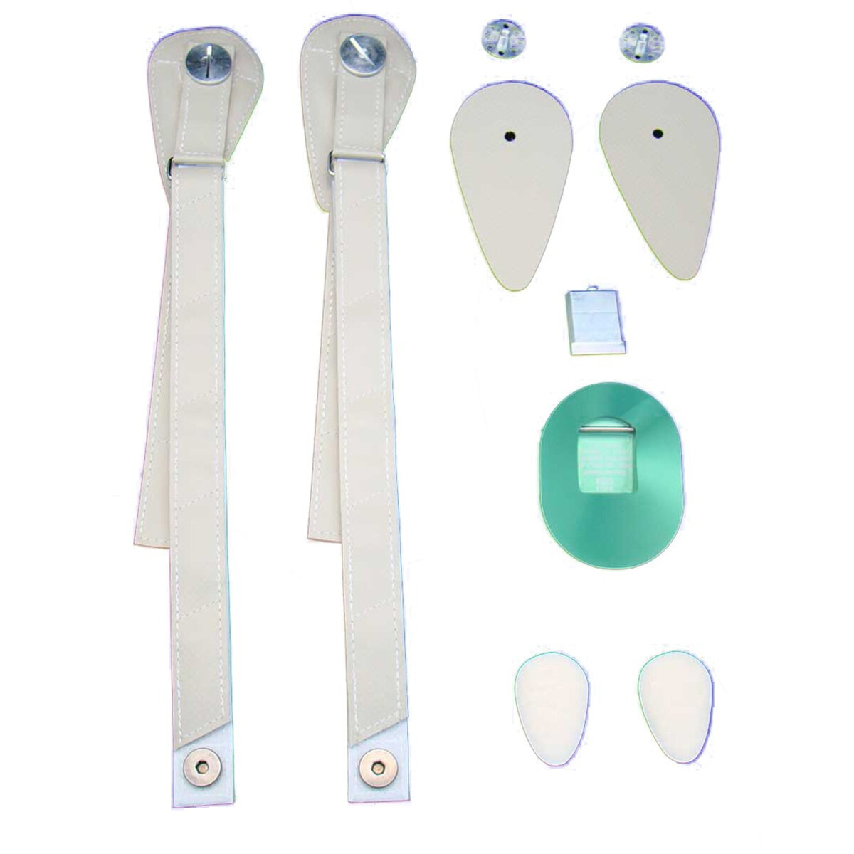 (2) Additional proximal nuts (not pictured)(1) CMP9/A – KISS® Muffler Set(1) CMP8/A – Distal Stainless Screw Set(1) CMP6/A, B or C – Distal Strap Set(1) CMP7/A, B or C – Proximal Strap Set(1) CMP22/A, B or C – Velcro™ Placard Set Includes Proximal Nuts and Screws(1) CMP5/A, B or C – Adhesive Ready Placard Set(1) CMP44/A – 4-Hole Angled Offset BaseSpecifications