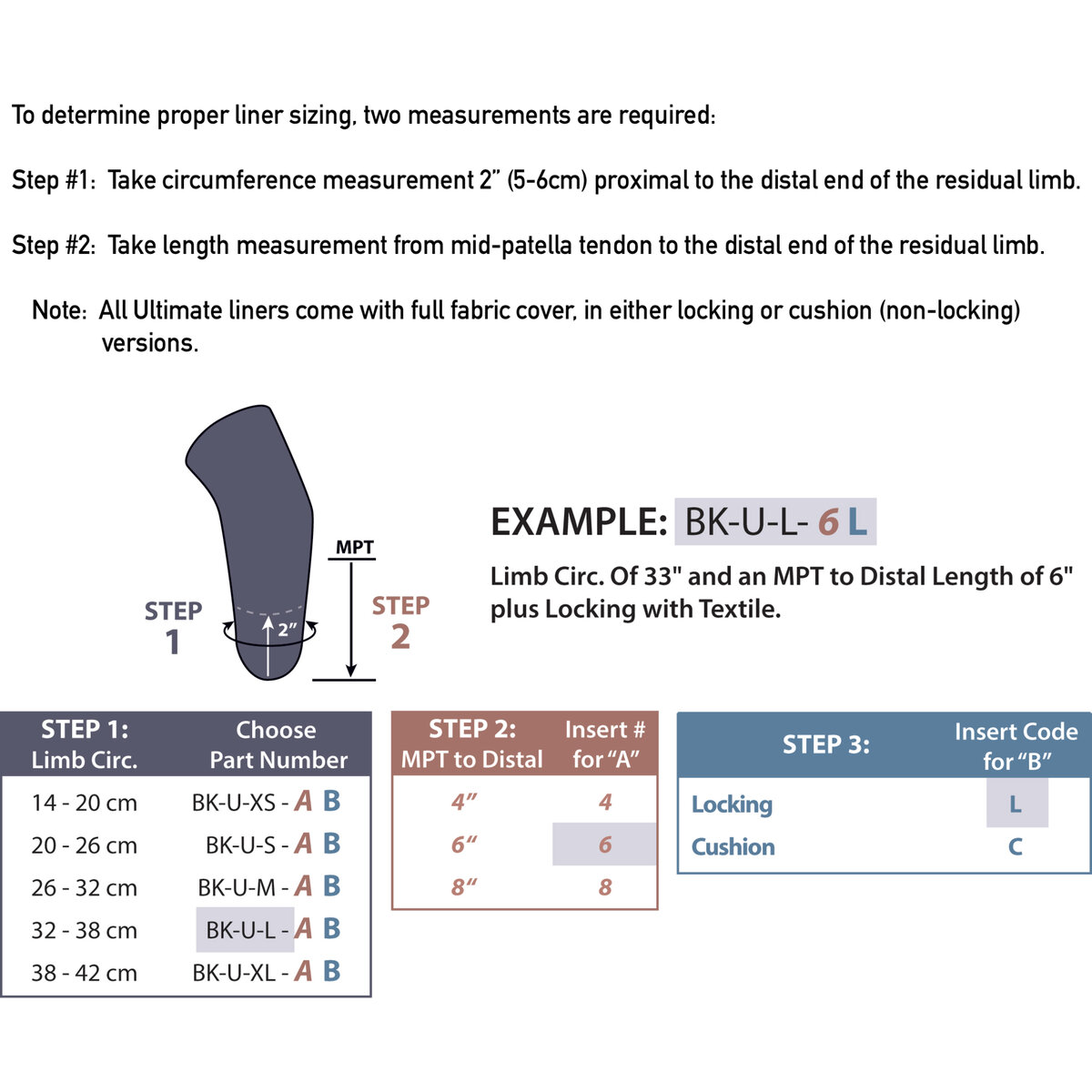 Manufacturer Recommended HCPCS: L5673 (Locking Liner), L5679 (Cushion Liner)