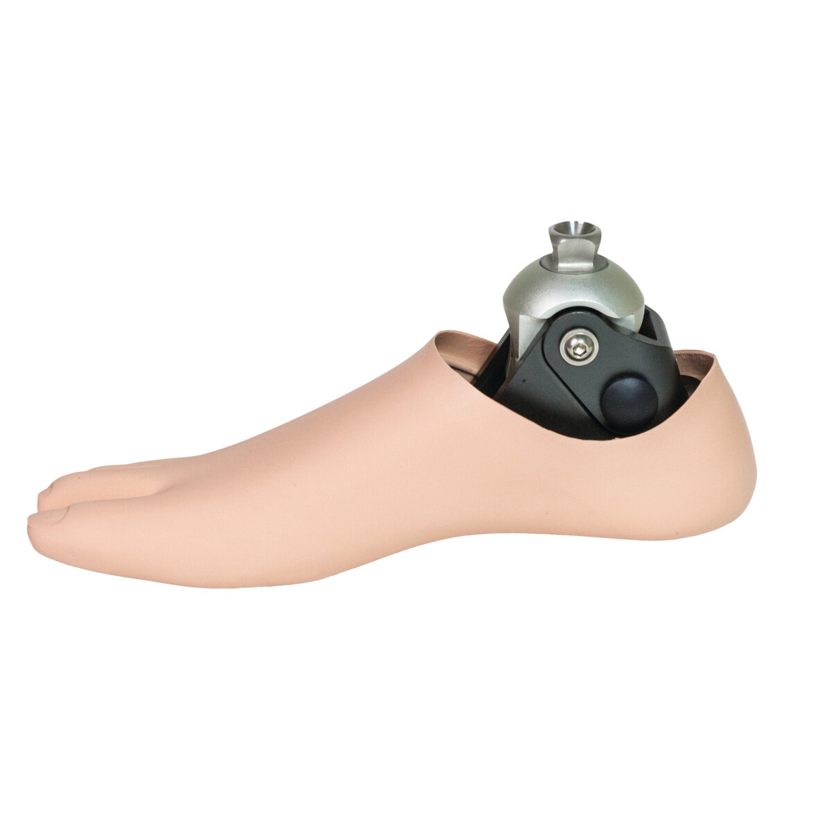 The Accent® provides up to two inches of heel height adjustment through a simple push of a button. The foot comes with a contoured, soft shin fairing that locks into the shell. This prevents cosmetic buckling when the foot is adjusted at various heel heights. The Accent® provides a service-free option for individuals who desire a cosmetically appealing foot.