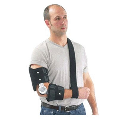 - The ROM Elbow Brace is a padded, cloth-covered foam strap that acts as a sling, making it easy to reposition the shoulder for additional comfort when necessary