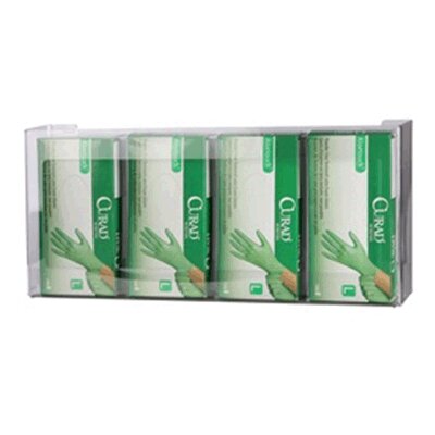 Glove Dispensers Keep gloves available anywhere in your facility with our glove dispensers made of clear, durable PETG plastic. These dispensers fit glove boxes of any size, mount on any wall horizontally or vertically, and are made of durable, clear plastic for easy viewing. Spring-loaded dispensers (Single model only).