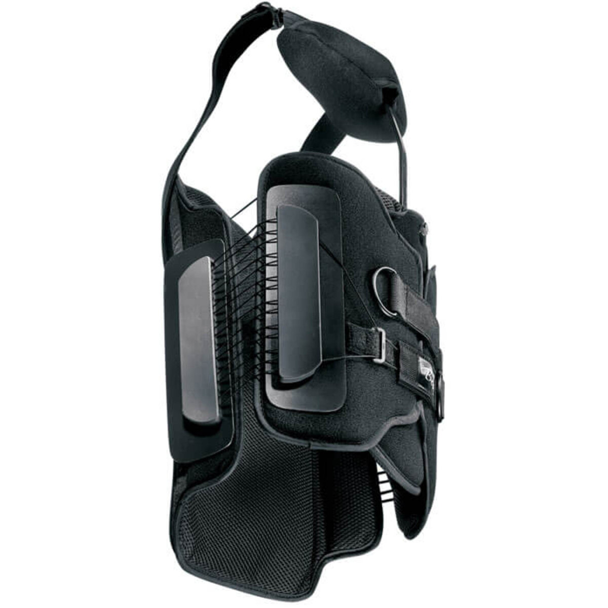 The BOA Duel TLSO is a prefabricated orthosis for post-operative, post traumatic, or chronic spinal pathology. The orthosis provides full circumferential rigid support from T-2 through S-5 and restricts forward, lateral and posterior motion, encouraging a hyperextension posture. The anterior and posterior panels are removable and heat formable to customize fit and functionality of the brace when worn. The anterior sternal assembly can be locked to prevent tampering and assure proper fit when donning and doffing the assembly. Elastic shoulder straps adjust easily and are wide to minimize any pressure. Compression adjustments are made by pulling each of the lateral lacer assemblies handles to the desired level of comfort for the patient. The TLSO is made of a breathable foam and mesh laminate that allows for optimal comfort to the patient.