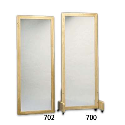 An invaluable aid to Physical, Speech, Occupational Therapy and Sports Medicine Departments. May be used in a variety of ways: in exercise and weight rooms, or with parallel bars and training stairs. Generously sized, distortion-free 1/4" plate glass mirrors are mounted in natural finish hardwood frames. Mobile units furnished with 2" casters.
