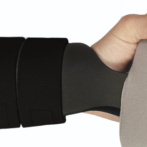The RCAI Contour Hand Orthosis is made of heat moldable thermoplastic for patient customization. The wrist of the orthosis can be positioned to meet progressive patient needs.