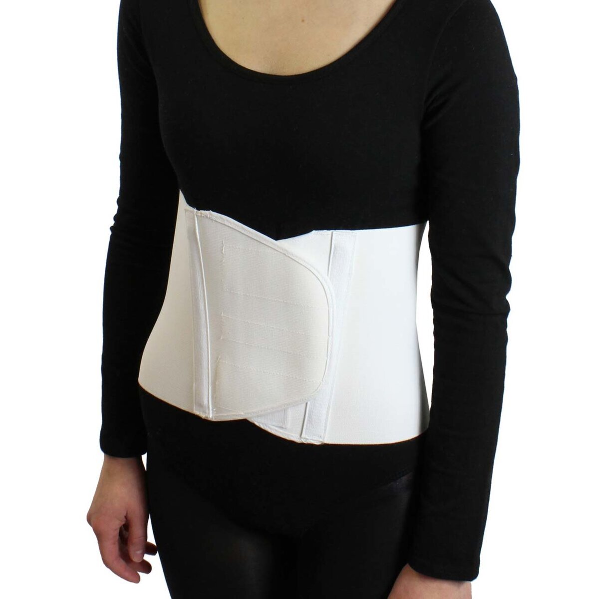 The Criss-Cross Wraparound Support is constructed with one piece of one-way stretch elastic that wraps around with a hook'n pile front closure. The back is reinforced with 3in wide elastic criss-cross straps.
