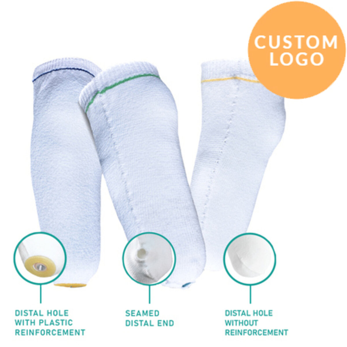 • Socks with distal hole are available with or without plastic reinforcement