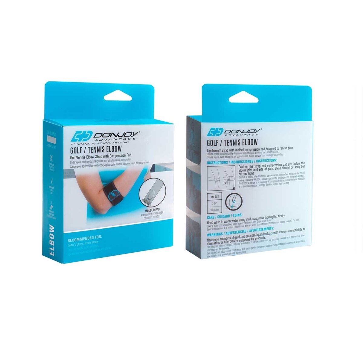 The DonJoy Advantage Golf/Tennis Elbow Strap features a moldable pad to compress and provide pain relief for Golf or Tennis elbow. The lightweight elbow strap is made of neoprene that offers warmth. With a slim and adjustable design, the elbow strap is easy to apply or remove.