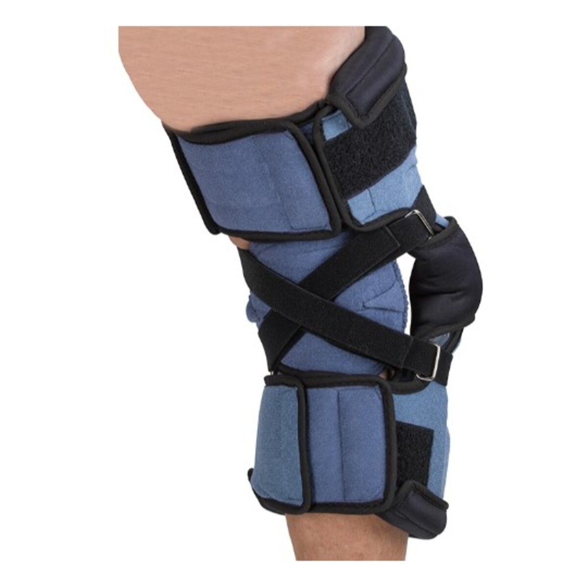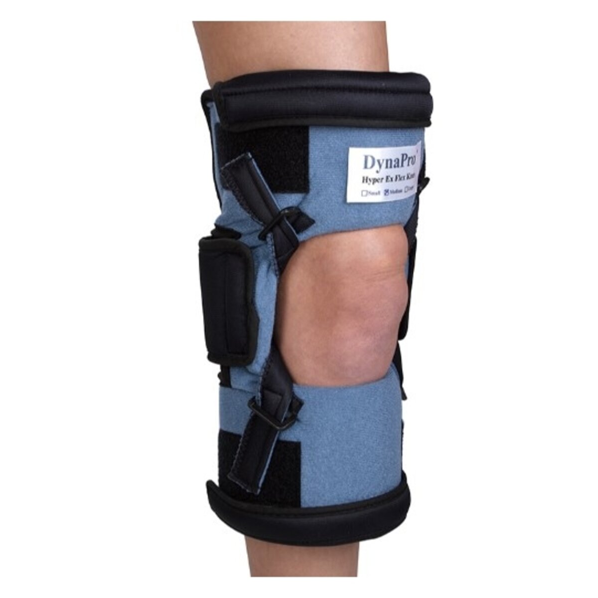 The DynaPro® Hyperextension Flex Knee features dual single setting hinges which should be set at 15° of greater flexion than comfortable end range passive stretch to initiate a therapeutic anti-spasticity stretch.