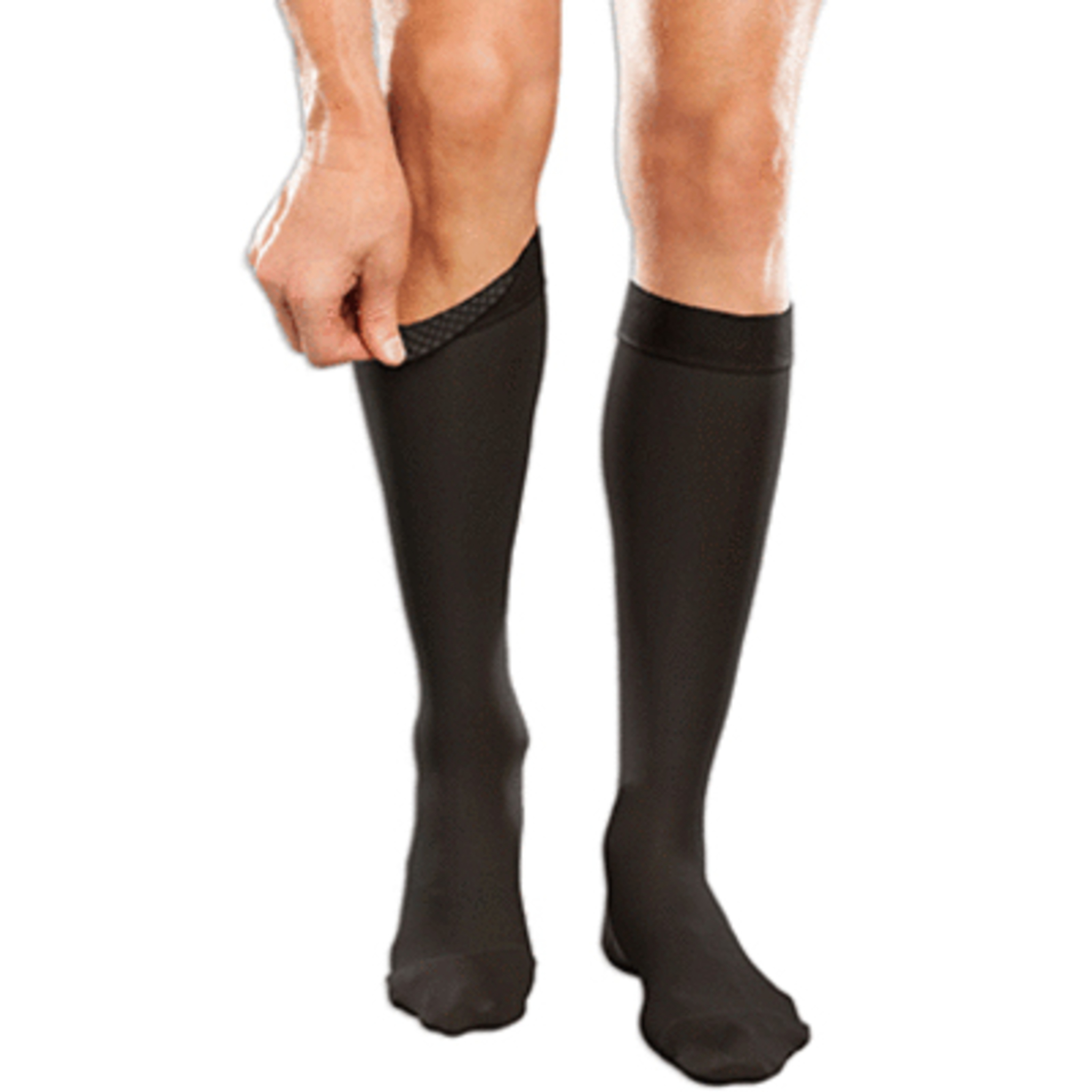 EASE by Therafirm® unisex opaque knee highs are designed to help prevent or manage mild edema or moderate swelling, prevent or manage DVT, prevent or treat moderate varicose veins, and provide relief of heavy, tired, achy legs. Featuring a silicone dot band for comfortable all-day wear and reinforced toe and heel for durability. Hand wash in lukewarm or cold water with mild detergent. Lay flat to dry.