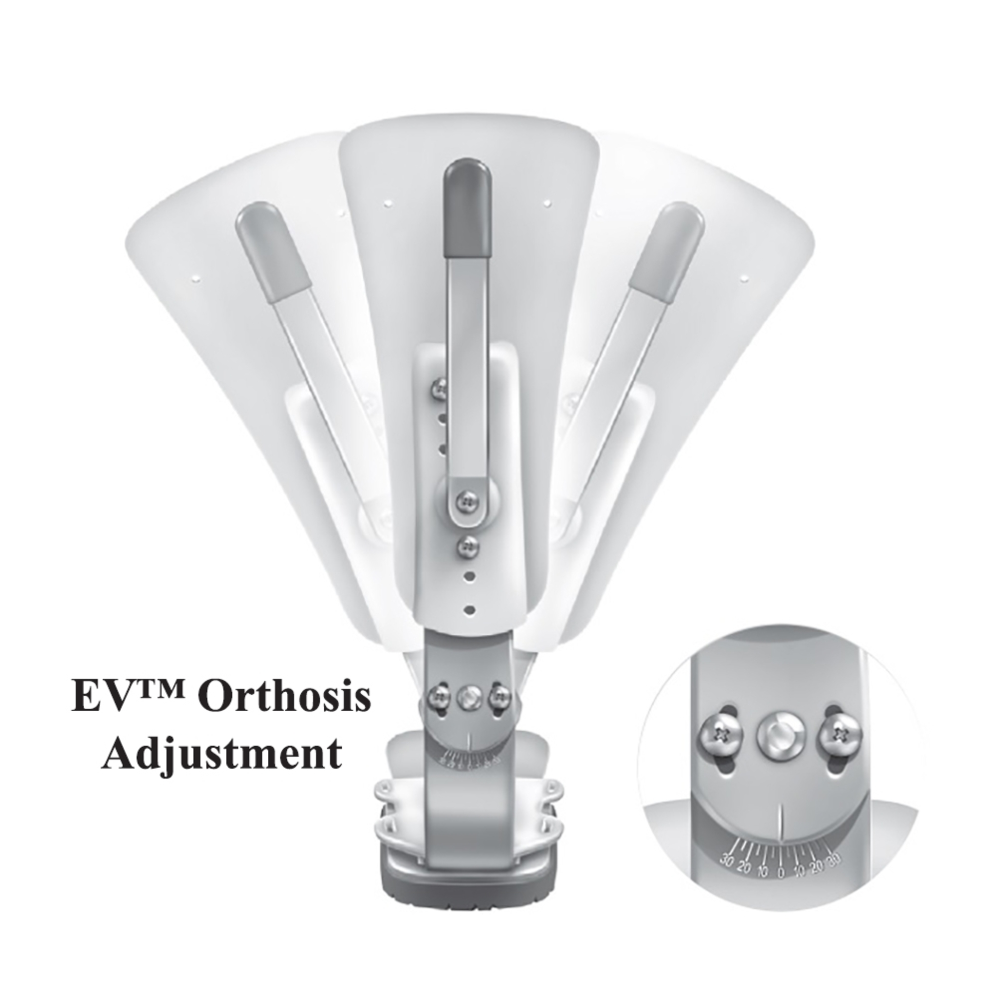 The EV™ (Equino-Varus) Orthosis is an Ankle Foot Orthosis offering positive heel suspension to control varus/valgus conditions of the ankle/foot complex (+ or - 30º). With calibrated settings on the bar, the patient’s progress can be more accurately documented. Additionally, the adjustable anti-rotation bar helps limit unwanted extremity rotation. The EV™ Orthosis bar works well in Anatomical Concepts’ standard AFO's and can also be used as the distal segment (PKA™ Orthosis) in their custom-made KAFO's, pre-fabricated knee, or KAFO systems.