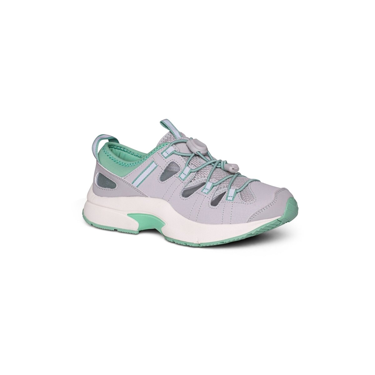 The Earhart women’s athletic shoe blends breathable mesh, waterproof leather, and extra depth to help elevate your outdoor adventures. Stylish and durable, these shoes offer comfort and ease with elastic quick-tie laces, perfect for warm climates and various terrains.