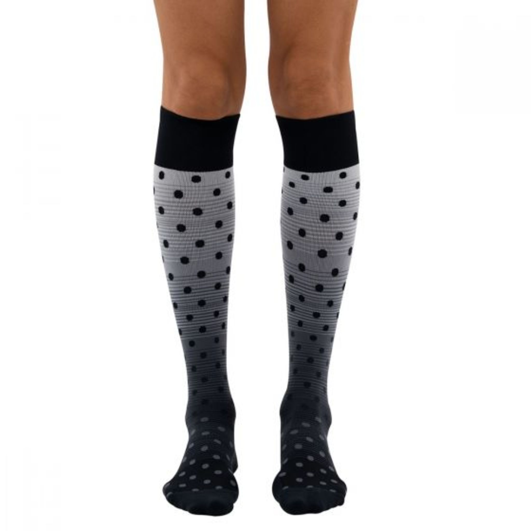 Subtle shades of grey move upward from dark to light, mixing with an overlay of dark dots in this modern novelty pattern. The Dr. Comfort® Everyday Style Shadow Dots help energize and reduce swelling in tired legs and can be dressed up or down, ensuring it won’t get lost in the back of the sock drawer. Constructed using durable nylon and spandex, these graduated compression socks offer machine wash and dry convenience, helping you look and feel good any day of the week.