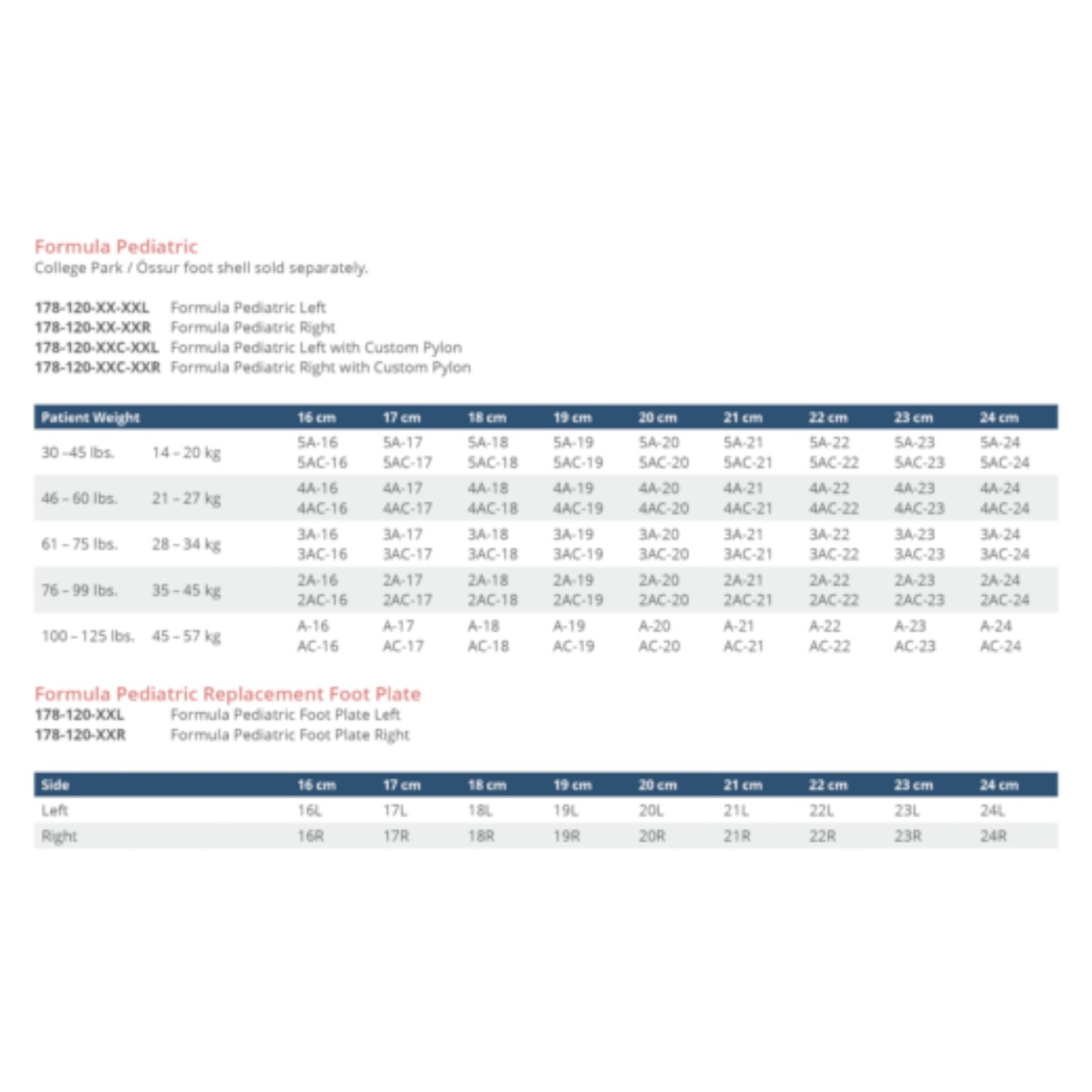 The Pediatric Formula foot from Fillauer provides flexibility and power, creating a dynamic foot that fits a wide breadth of patients.Foot Plate onlyPosterior mount design provides ideal balance of flexibility and powerLong carbon composite pylon delivers lightweight, dynamic responseFull split toe feature offers maximum multiaxial functionPylon accommodates growth up to two additional foot plate sizesFits a standard or sandal-toe foot shell