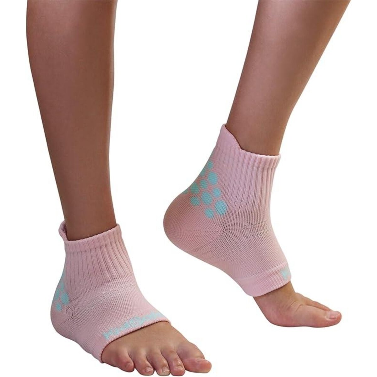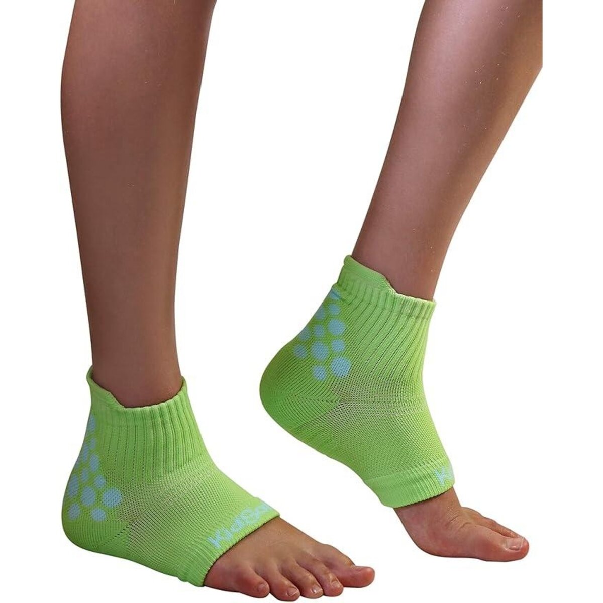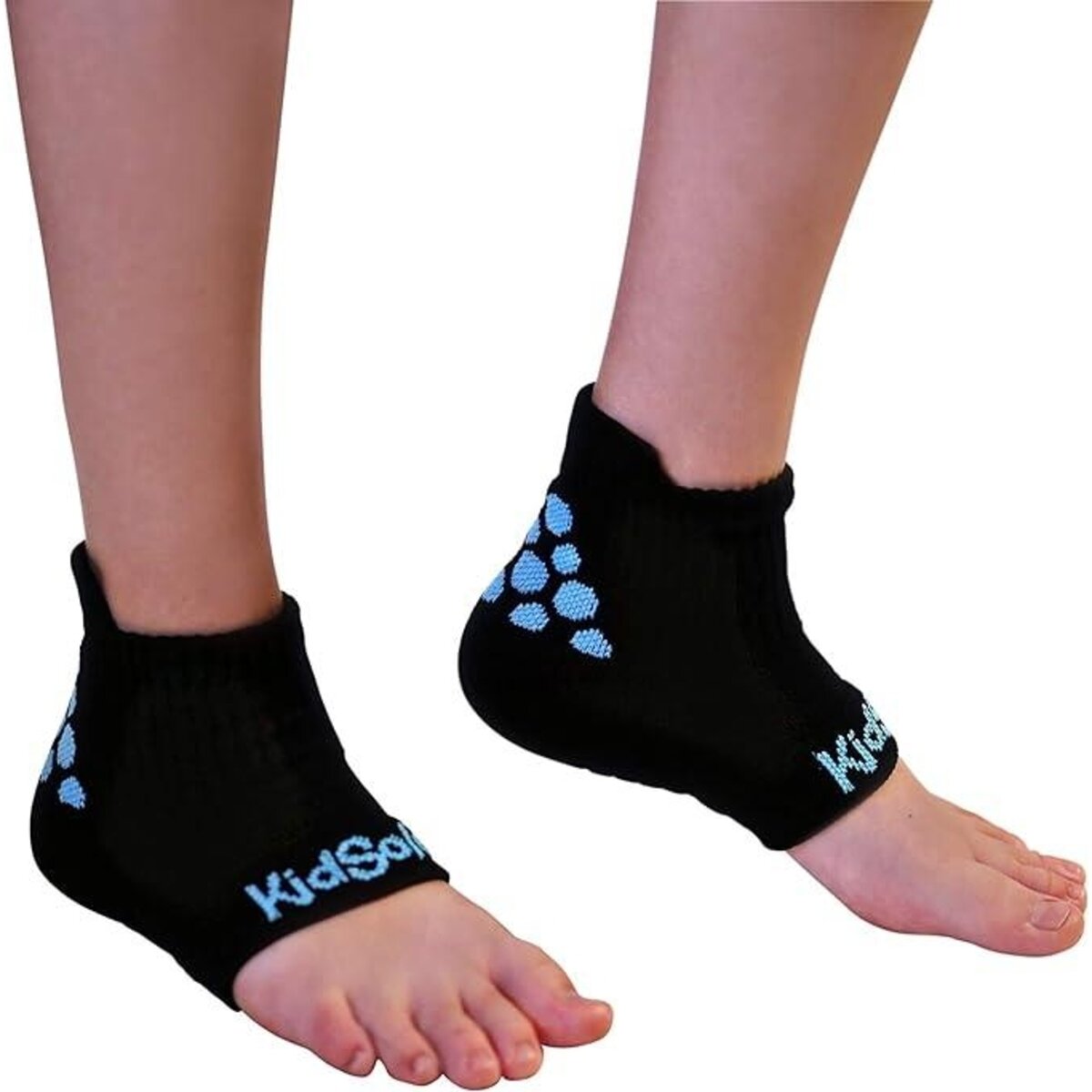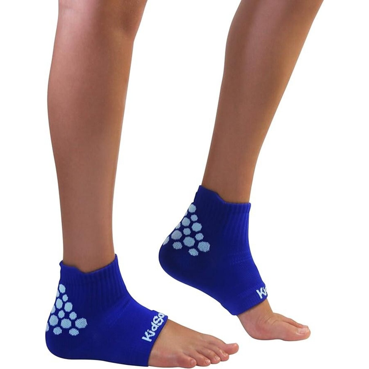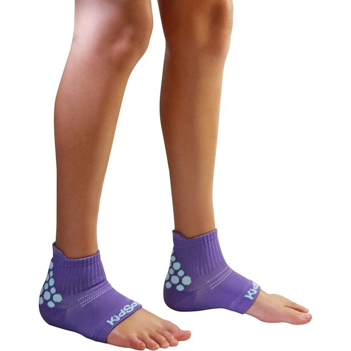 Designed for kids with heel sensitivity, KidSole Heel Sensitivity Socks provide relief from Sever's Disease, plantar fasciitis, and other heel pain. Featuring a versatile 3/4 length design that can be worn over or under regular socks, and has breathable materials which maximize airflow, keeping feet cool during any activity. Reinforced with double-threaded cotton for durability, these socks also feature a gel layer for enhanced cushioning and support, ensuring a secure fit all day long.