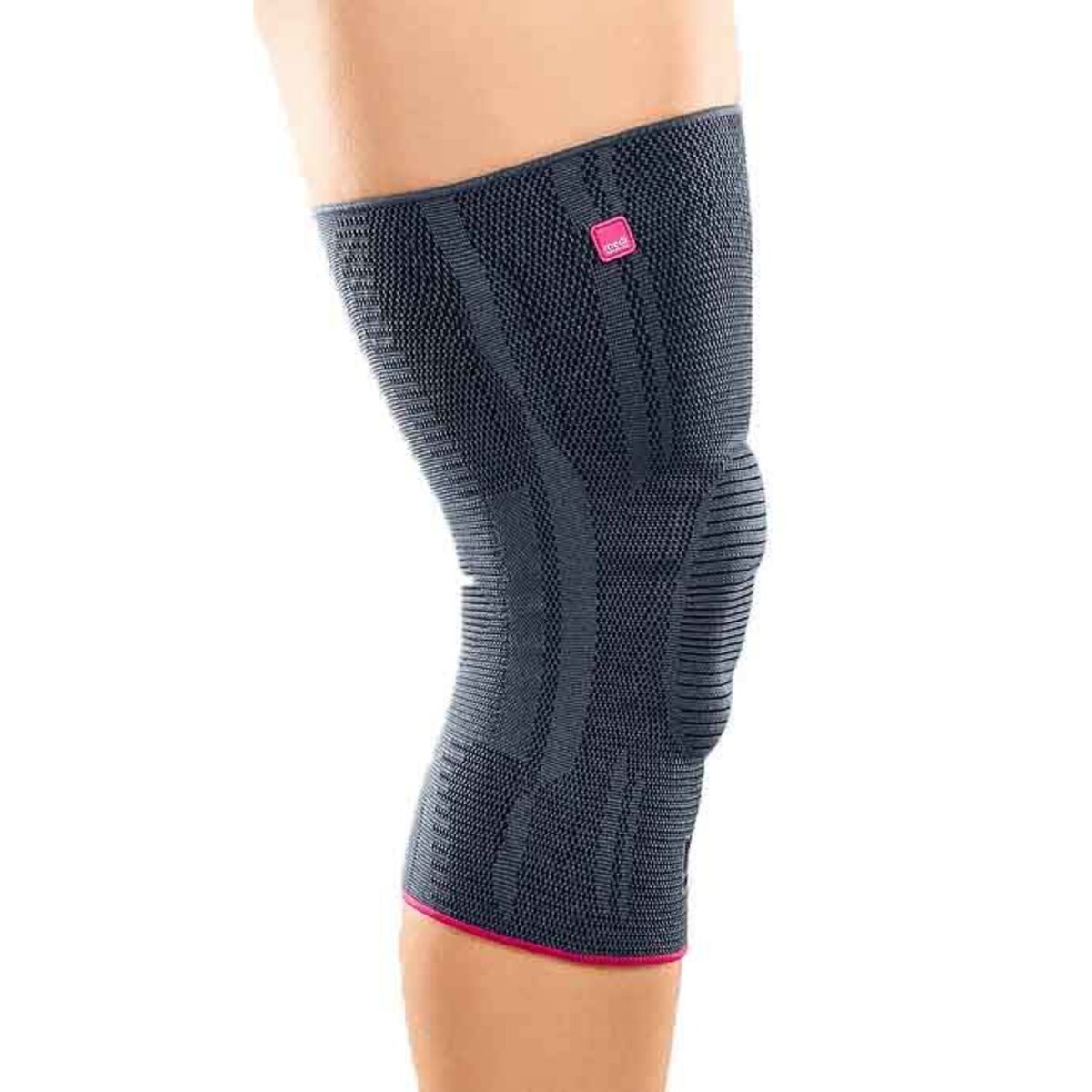 The Genumedi Knee Support with 3D Silicone Pad is a knee support for soft tissue compression. It uses a firm, compressive sleeve surrounding a rippled Comfort Zone with an integrated donut patella silicone ring to support, lessen pressure, and reduce swelling. Its antibacterial fibres and natural eucalyptus fibres are used for gentleness on skin and odor reduction.