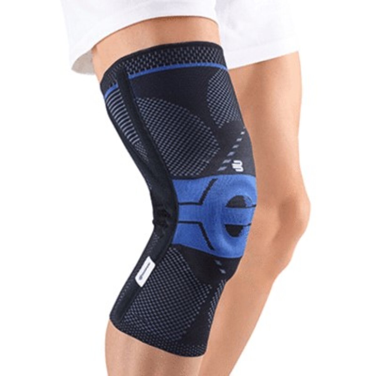- The active support, with its two integral massage pads and an adjustable corrective strap, holds the kneecap securely in a natural, central position, activates the musculature and thus speeds up the healing process.