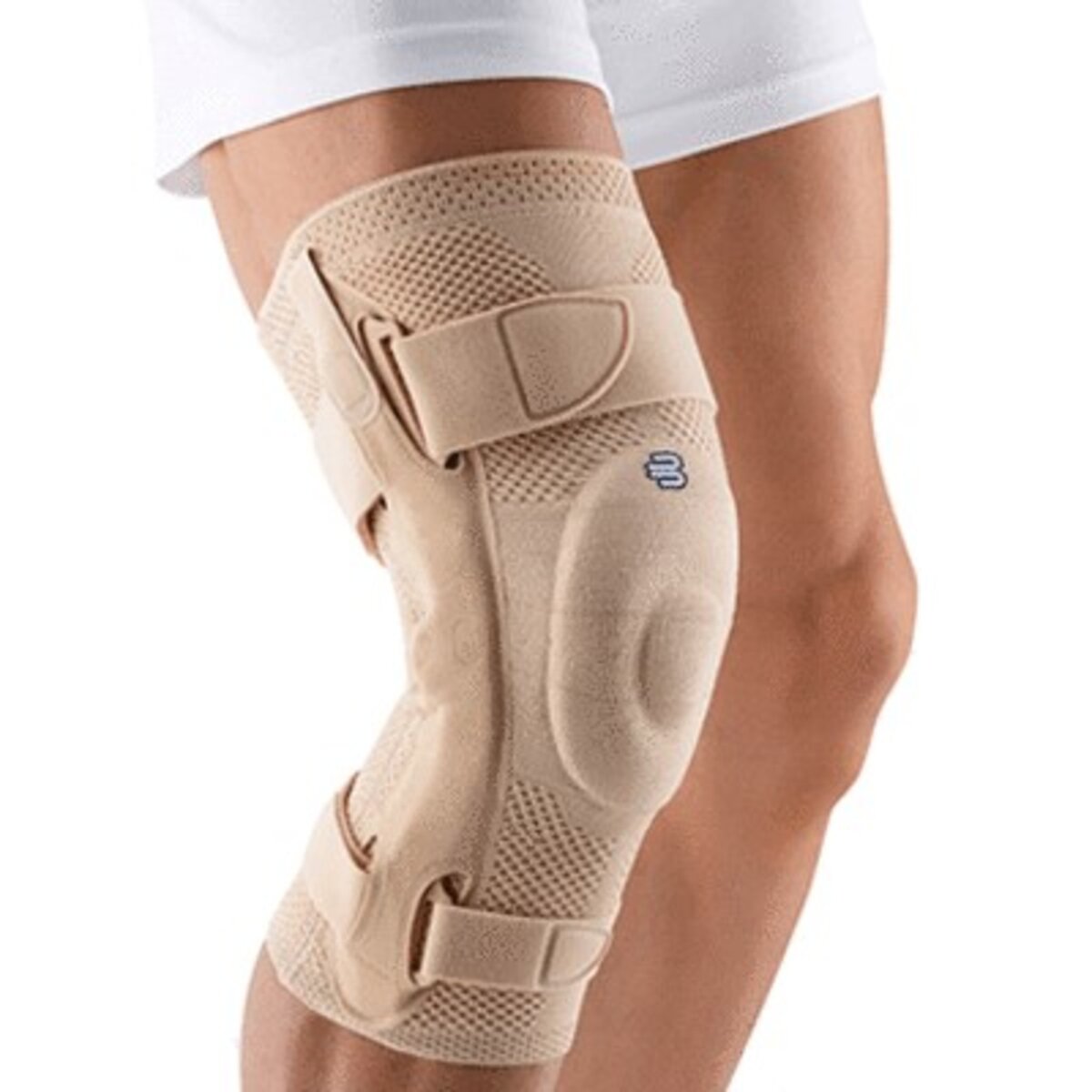 GenuTrain® S knee brace has an extra level of support using side bars and a knee cap insert to guide the knee’s movement while keeping the area stable. The side bars are secured with circular, inelastic straps. Special knitting techniques make the support comfortable to wear, including behind the knee.