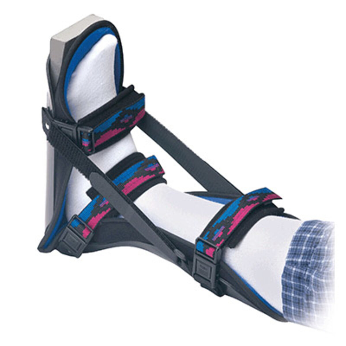 Comfortably positions the foot in a controlled amount of dorsiflexion. Adjustable bilateral dorsiflexion straps enable the application of prolonged stretch to the soft tissues of the Plantar Fascia and the Achilles tendon.
