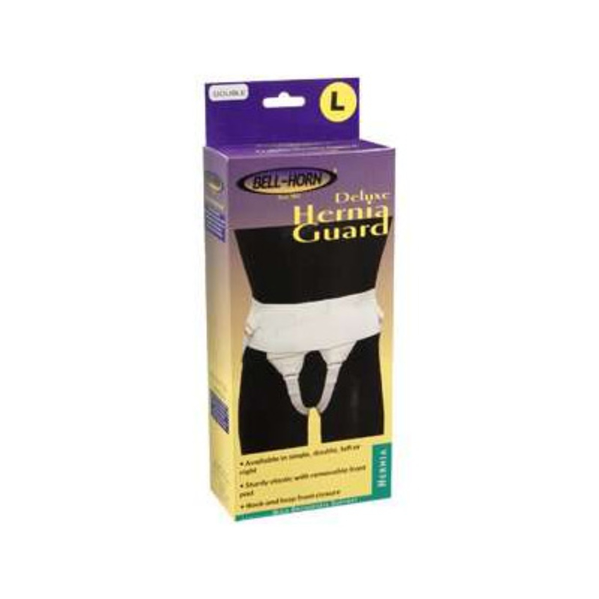 The Bell-Horn Double Hernia Guard provides comfortable yet constant pressure to the hernia. Two uniquely shaped foam pads give gradual pressure and support. It is woven with an elastic wraparound waistband designed for durability and patient comfort.