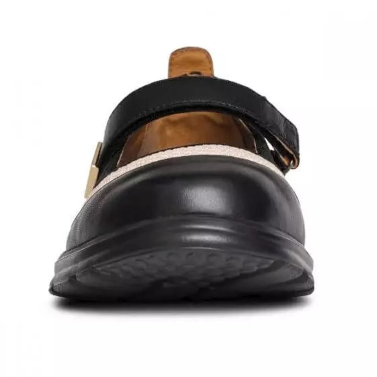 The Jackie is a classic Mary Jane style dress shoe that provides protection and comfort for patients in a timeless style. Constructed with high quality leather and a hook and loop closure, this shoe is a great option for those with dexterity constraints. The Jackie offers stretchable synthetic (knit) and leather uppers for increased breathability and comfort.