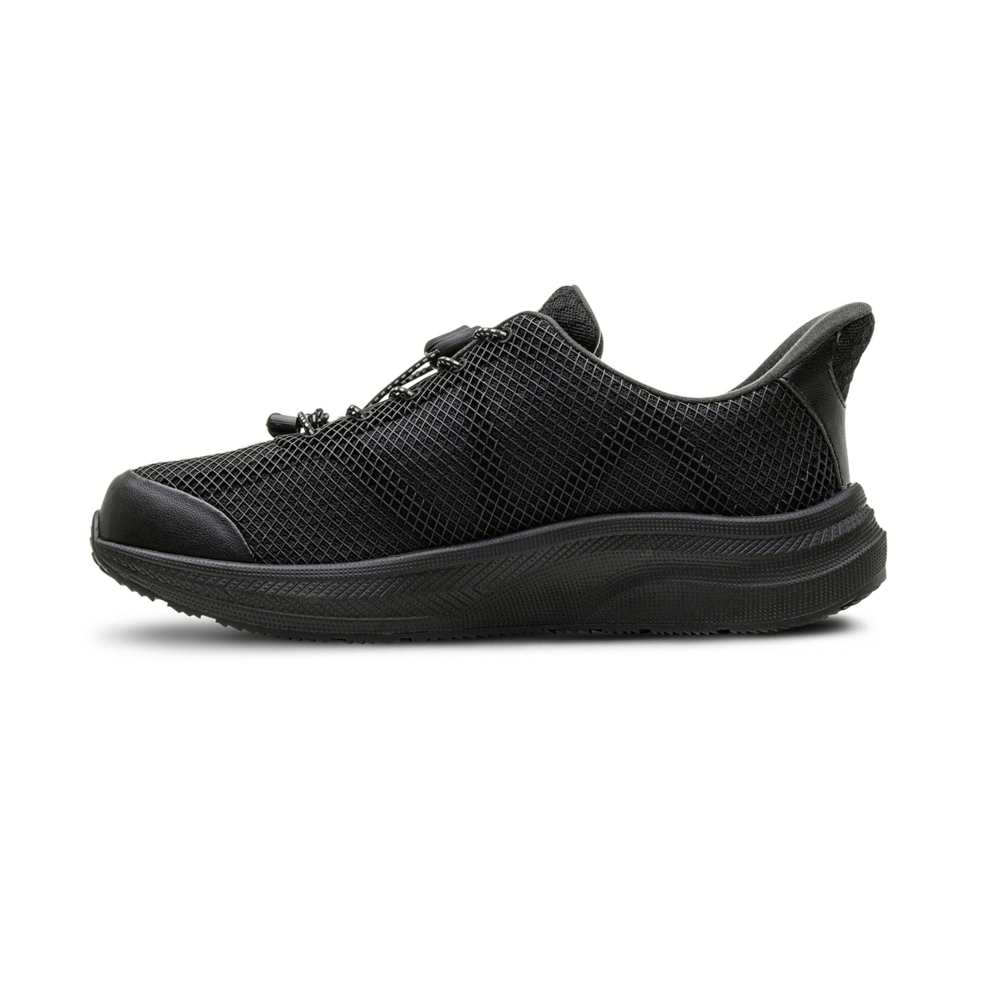 The Jay men’s shoe offers hands-free wear with its Quick-Fit heel counter, allowing easy slip-on without bending. Featuring elastic Quick-Tie laces, a protective toe box, and breathable materials, this shoe provides comfort and support throughout the day. The certified slip-resistant outsole and tongue gusset ensure stability and a secure fit, making it perfect for those seeking both style and ease.
