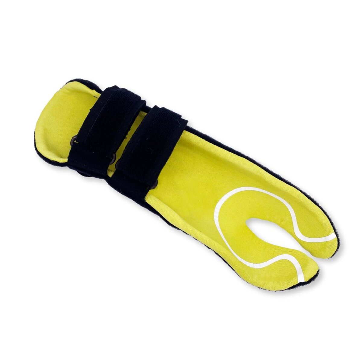 The ALX Joanie is designed with a curved shape to scoop and launch tennis balls. It can be used for tennis, table tennis, pickleball, and other small ball-throwing activities. It can be fitted onto the ALX sleeve or can be worn directly on the arm.