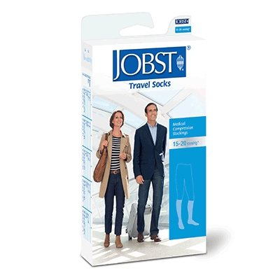 Sitting for long periods of time in the cramped quarters of an airplane, car, train or bus can lead to circulatory problems. JOBST Travel socks promote leg health during long hours of inactivity.