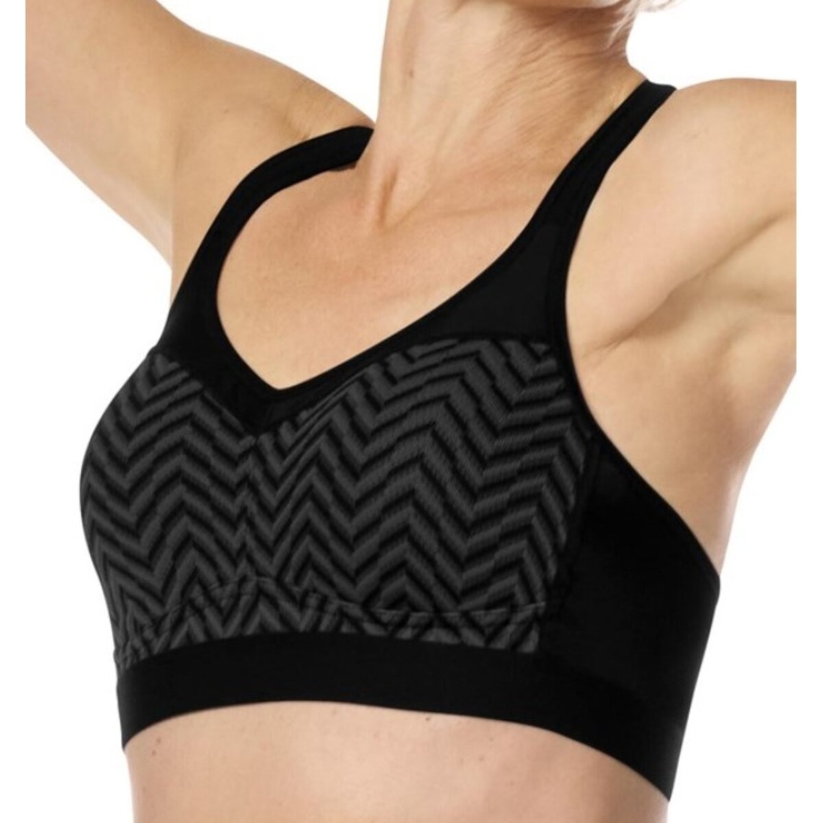 • Adjustable, elastic back straps with racerback option to adjust the wearing style for different fitness activities