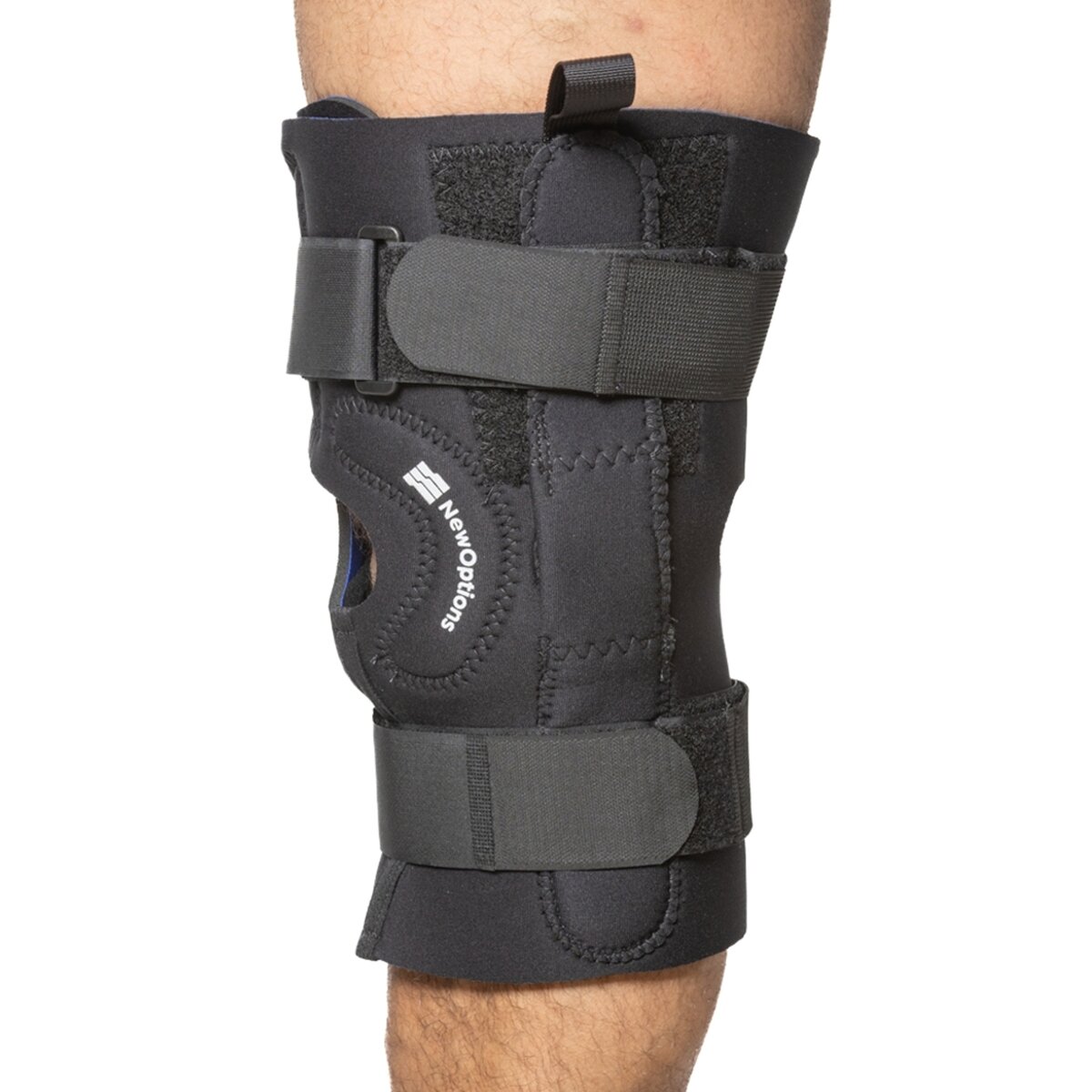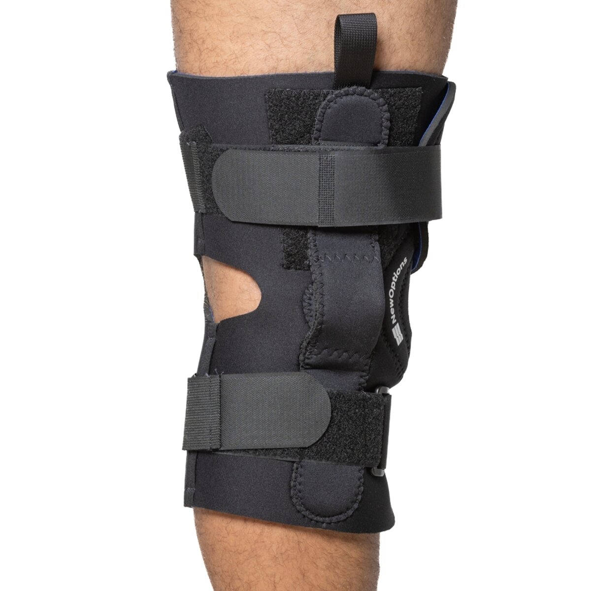 • Unique slip on brace where the top opens and serves as a wrap around to accommodate patients with extra wide legs and thighs