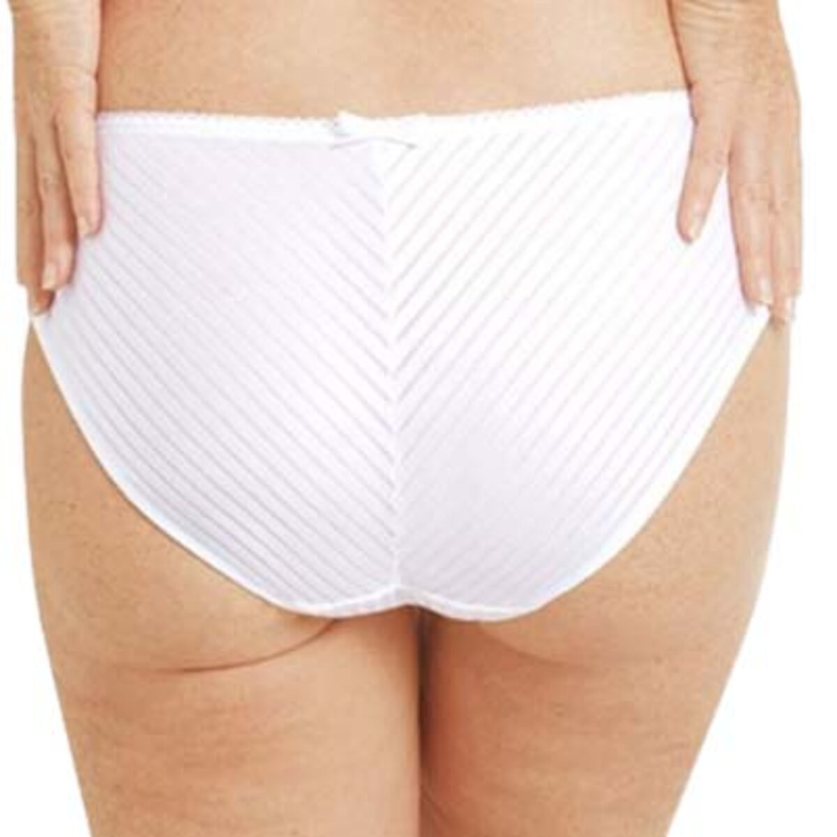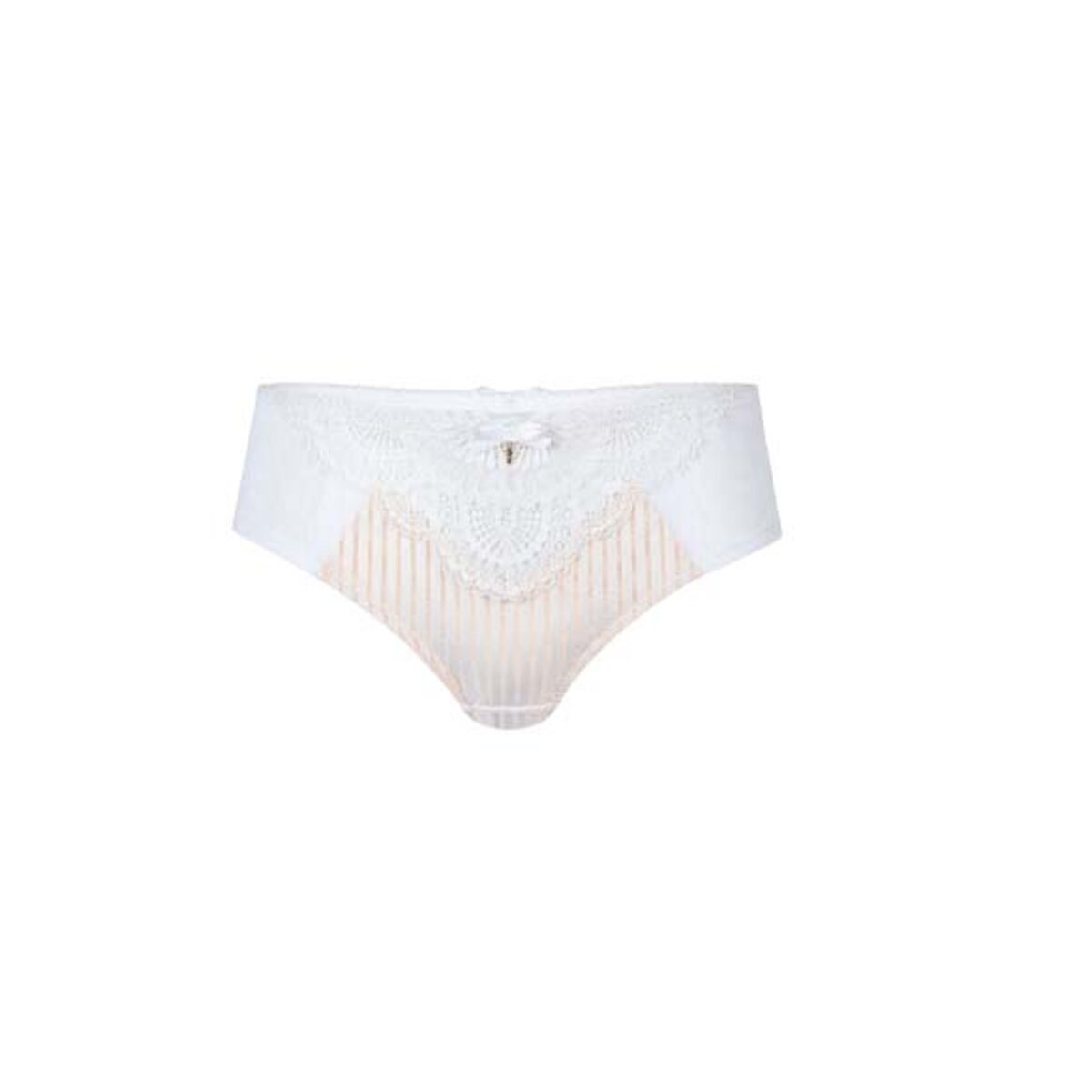 The Amoena Karolina Panty has rich lace detailing in a fan optic and a unique stripe fabric all the way to the back, a satin bow and golden pendant add that extra feeling of luxury. The panty matches any of the pocketed bras in our Karolina group and fits just below your waist.