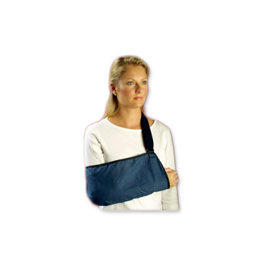 The padded arm sling features a soft padded strap that provides exceptional comfort for the patient. The strap is easily adjusted to allow the patient to position the arm sling in the desired position.