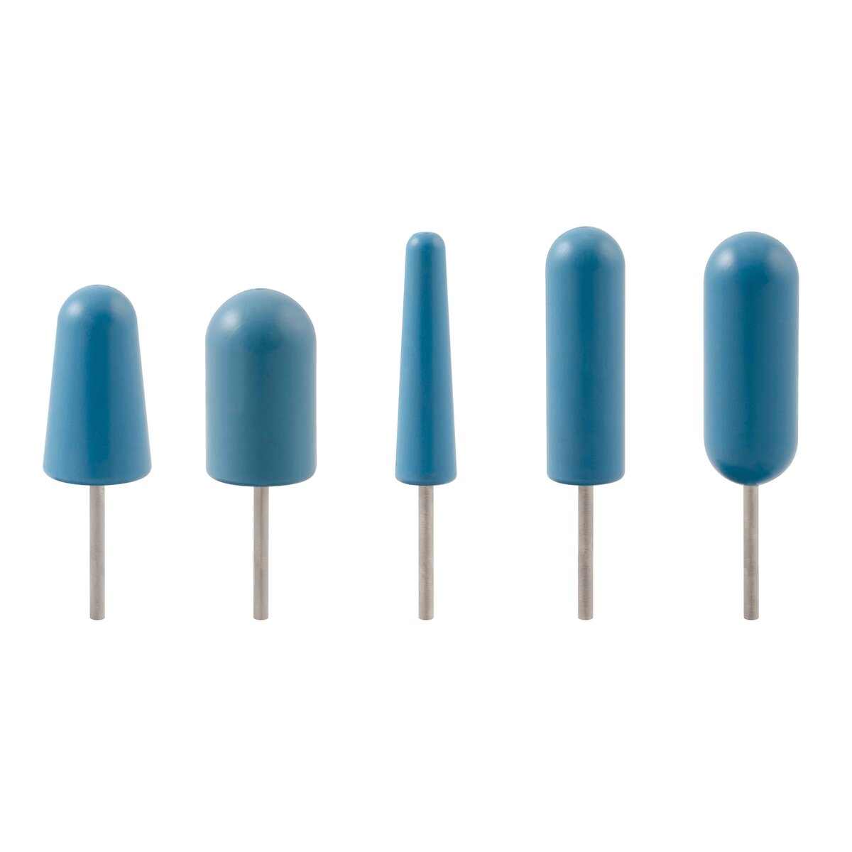 Mini, 1/8” polishing arbors are available in five styles: tapered, slim, double-ended, ball nose, and cylindrical.