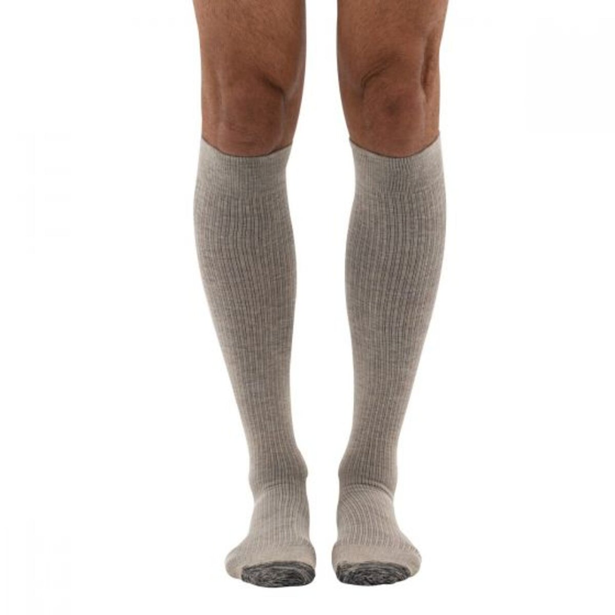 A soft blend of tonal grey shades combine to create this beautiful charcoal heather compression stocking. Dr. Comfort® Opaque Heather, Below Knee length stocking offers modern style and comfort while delivering the moderate compression you desire. This 15-20mmHg microfiber opaque knee high can help improve circulatory wellness and reduce swelling in the legs, feet and ankles. The comfort top band helps keep the stockings in place and the versatile style can satisfy both dress and casual needs.