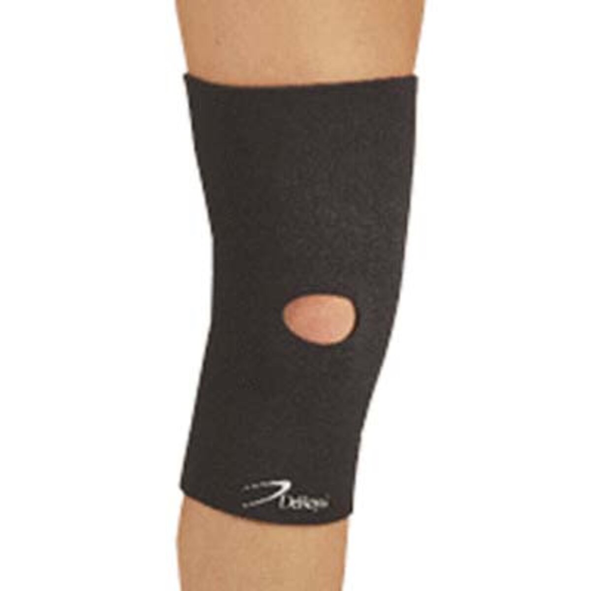 The Open Patella Knee Support uses neoprene construction to provide warmth, support, and compression. Tri-tex™ construction is available as an alternative with an emphasis on breathability. The optional oval pad provides additional patella protection.