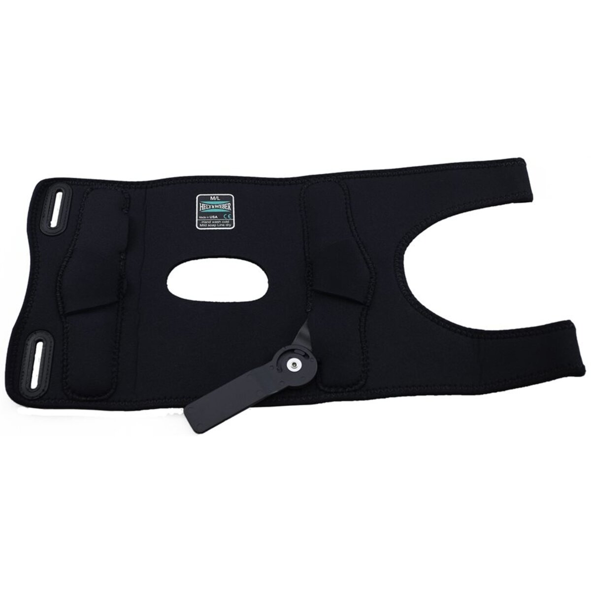 - Material: Fabric (Lycra, Neoprene), Rigid Hinges