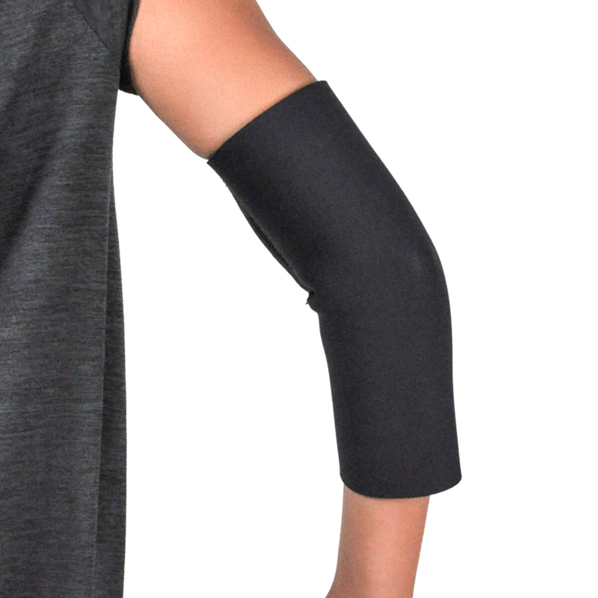 Part of New Options Sports' Kid Stuff line, the Pediatric Elbow Sleeve is made of 1/8" nylon 2-sides neoprene. Provides warmth, compression and protection. Available in Black, Green, Teal, Purple, Lavender, Fushia, Neon Lime, Neon Pink, Neon Orange, Tan, Royal Blue, Red, Navy and Camouflage. Specify color.