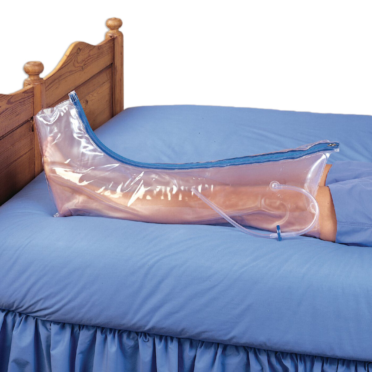 The Urias Pressure Splints consist of a double layer of washable PVC sheeting, each splint features a plastic zipper closure for easy donning, and is transparent to facilitate positioning. When applied to the clients limb, during inflation the soft inner layer molds exactly to the limg, providing all-over, even pressure when complete. NOTE: Inflation pressures should not exceed 40 mmHg. Double-chamber splints offer varying levels of pressure in two separate, individually inflated chamber for specific management of excessive extensor or flexor tone.Counter abnormal tone development: Applied following brain trauma or strokes, these splints inhibit spasticity, assist movement patterns, expedite weight bearing and reduce edema. The dynamic force of these pressure splints encourages sensory recovery by stimulating proprioceptors.Inhibit development of contractures in neurological disorders: Where a contracture is already present, Urias Pressure Splints may be used to stretch it, gradually reducing the deformity.