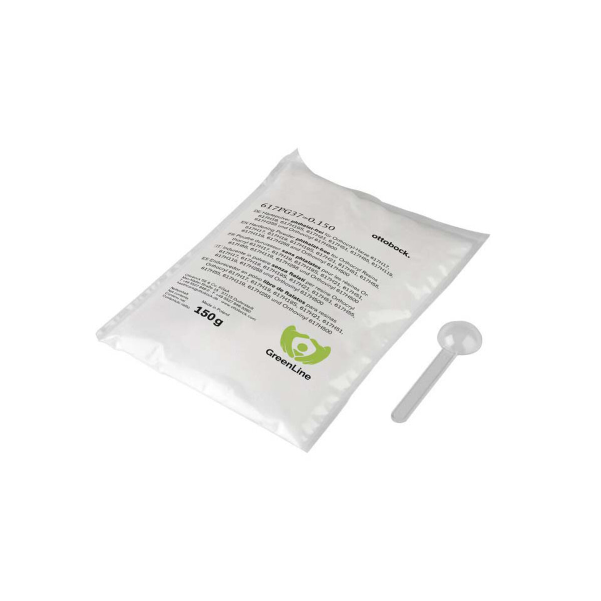 The Ottobock Phthalate-Free Hardening Powder marks the beginning of a new generation of materials offering an ideal combination of functionality and occupational health and safety. The hardening powder is less harmful to health than comparable products and therefore improves occupational health and safety in the orthopedic workshop.