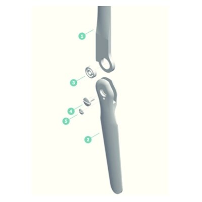 Stainless steel joints with ball bearing, joint center placed to the posterior, centered joint head, concave half-round bar profile, forged upper and lower joint bars, for swimming prostheses.
