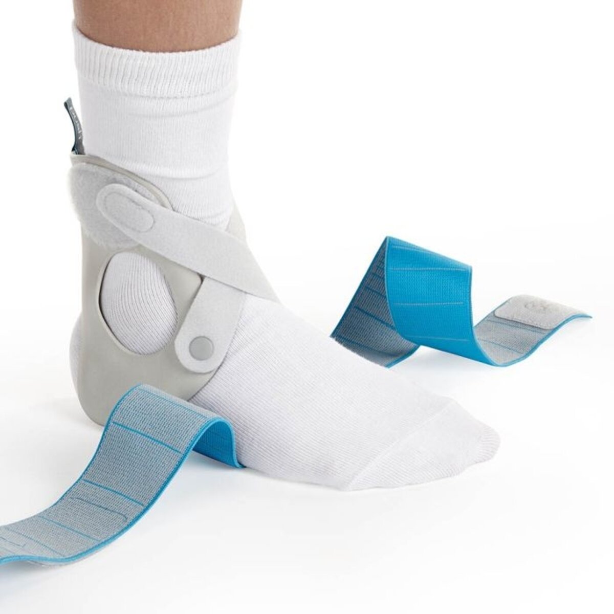 The Push Ortho Aequi Junior provides support for moderate ankle instability with diagonal non-elastic straps for children/adolescents. Compression can be added with the adjustable straps.