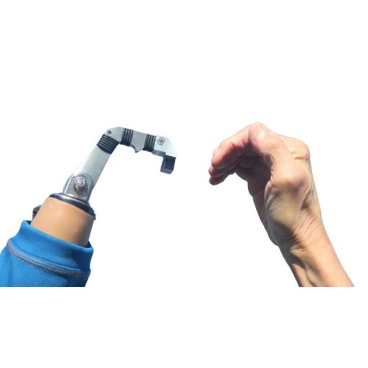 The Raptor Sky Hook is the first-ever, commercially produced prosthetic accessory for indoor gym and outdoor rock climbing. The Sky Hook was developed with the personal input and extensive, field testing of nationally recognized one-handed climber John Sedor. It has no handedness and is functional for persons with either right or left hand absence. The Raptor has a slim, solid titanium plate support body bolted to a stainless steel wrist adapter system that fits all USA standard prostheses.