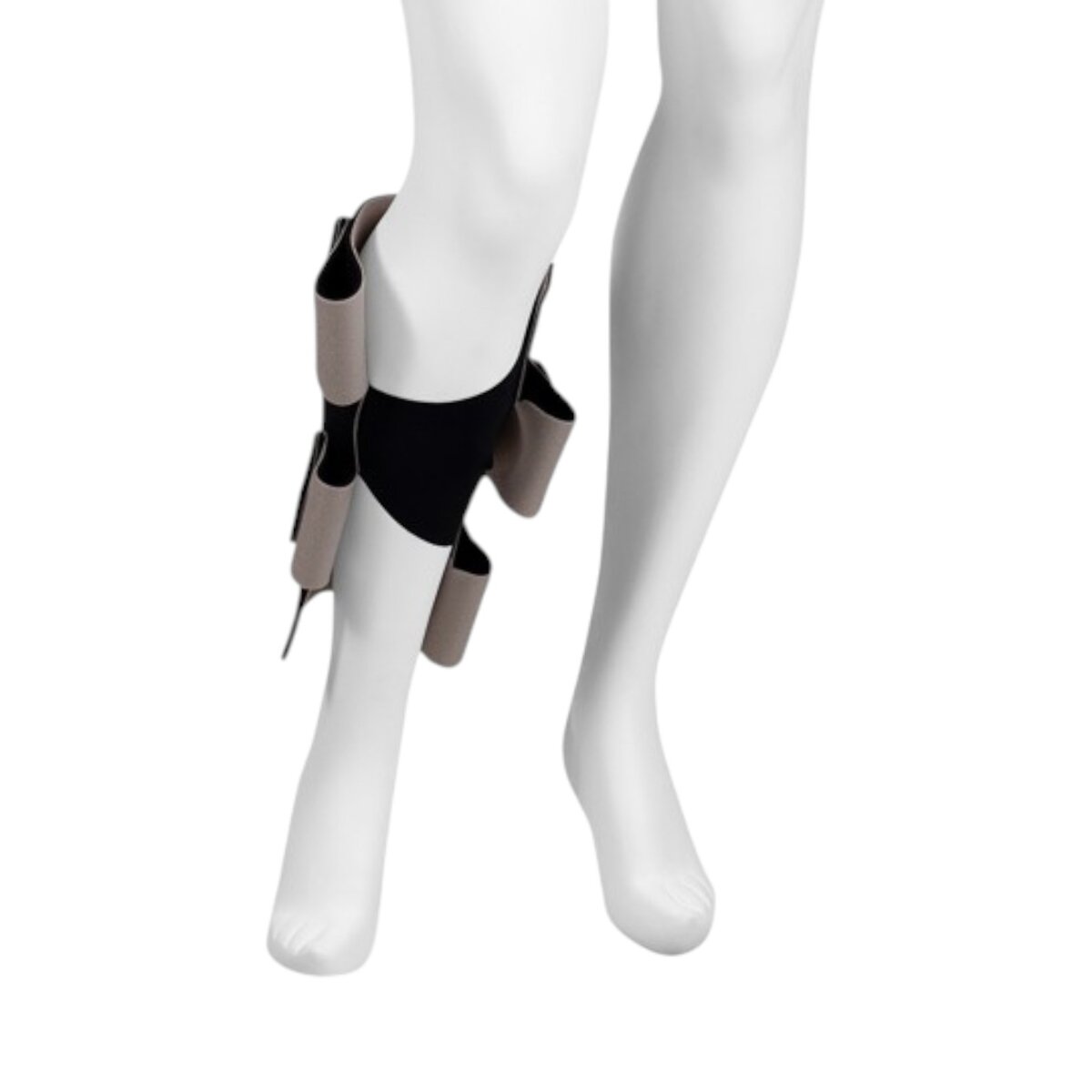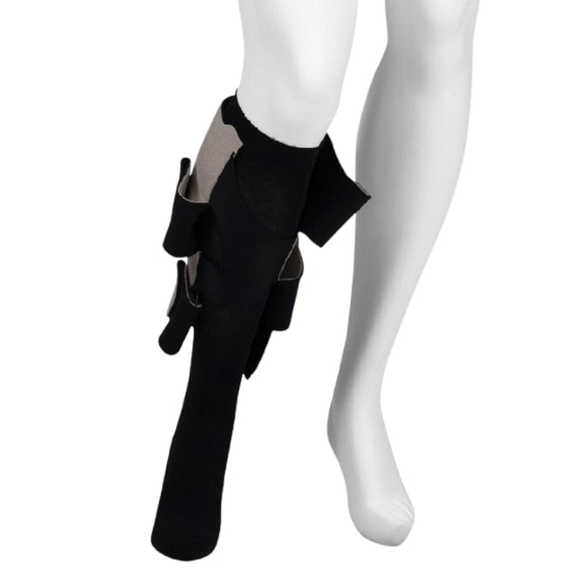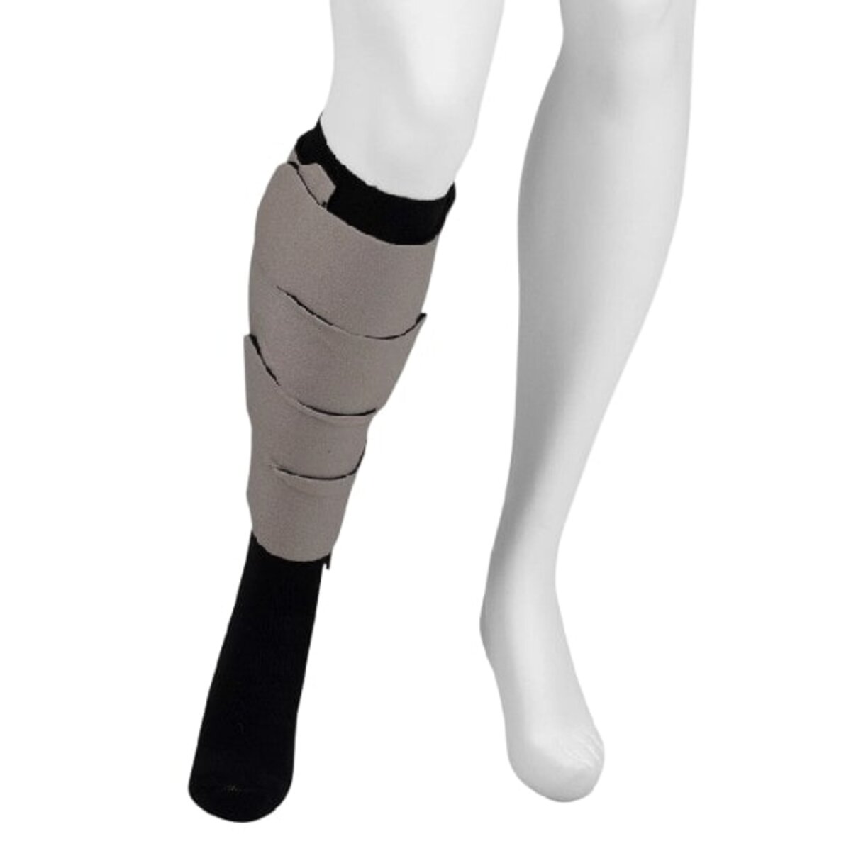 Juzo's Reversa Compression Calf Wrap features a short stretch for high working pressure at 30-60 mmHg. Used as an alternative to traditional wrap-around bandages, the wrap is reversible, has pull tabs for ease of removal, and contains notches to assist with gapping and bulk. The Slip-on version features a patent-pending inner connector to make donning simpler.