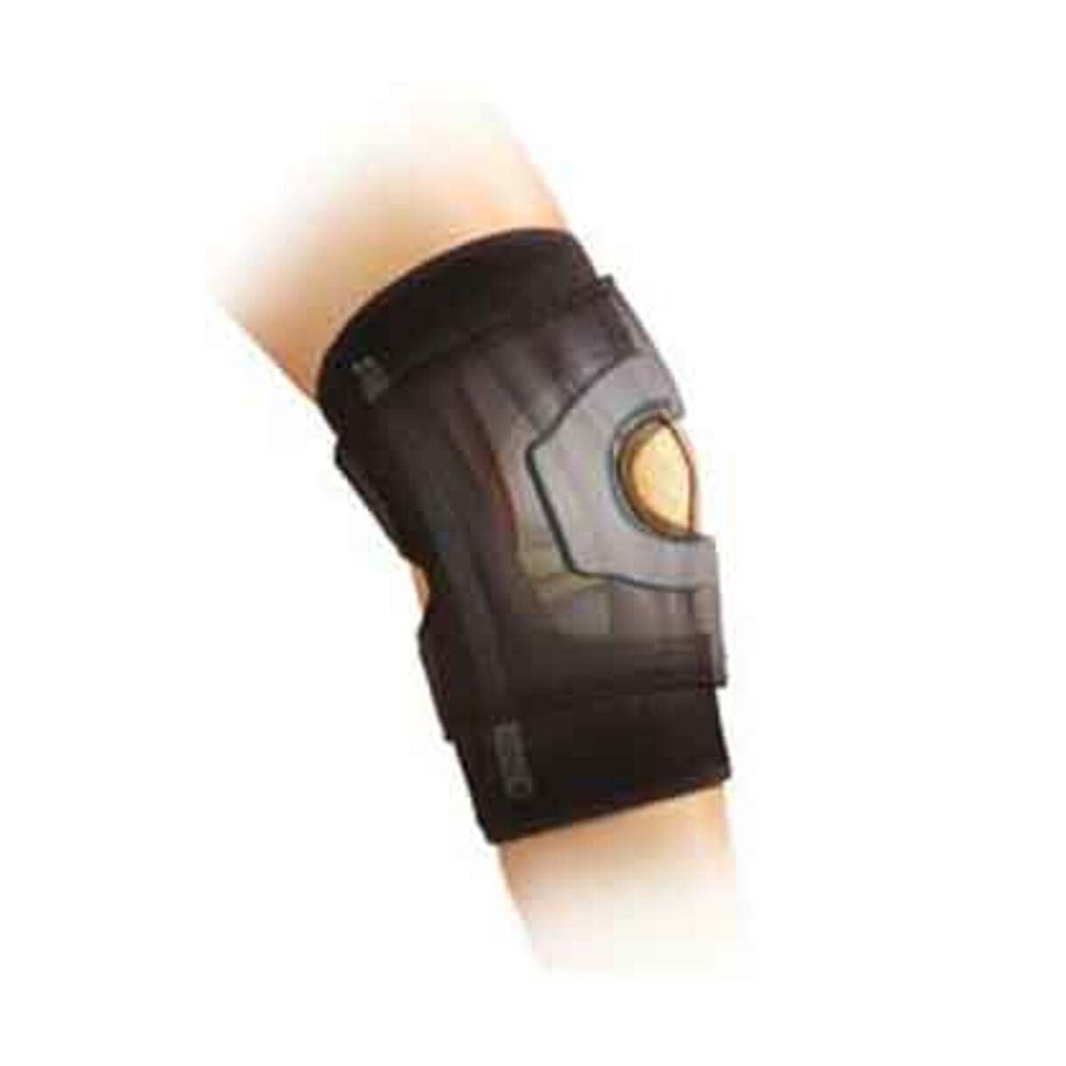 The Sheilds® Hinged Patella Stabilizer (Original) (5675) uses a directional force strap and Trakaderm® "U" shaped buttress to provide dynamic control of the patella, reducing discomfort and enhancing recovery. The independent calf and thigh straps pair with an anterior closure for a customizable fit that conforms to the anatomy. Khul™ neoprene provides warmth and compression.