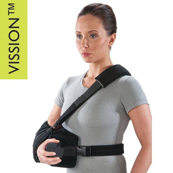 The Sling with Abduction Pillow features a contoured abduction pillow that transfers the weight of the forearm to the patient’s back and to the unaffected shoulder while abducting the arm away from the body at about 10-15 degrees for shoulder rehabilitation.