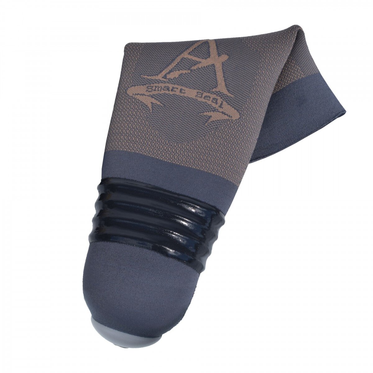 The Smart Seal Liner features raised bands that grip the socket wall forming a secure interface. The low modulus bands stretch against the socket wall and the smooth inner wall conforms, to the residual limb. The locking version features a new distal construction to control distal distraction. The transfemoral rings begin 4.95 inches from the center of the distal end while the transtibial rings begin 2.9 inches from the center of the distal end.
