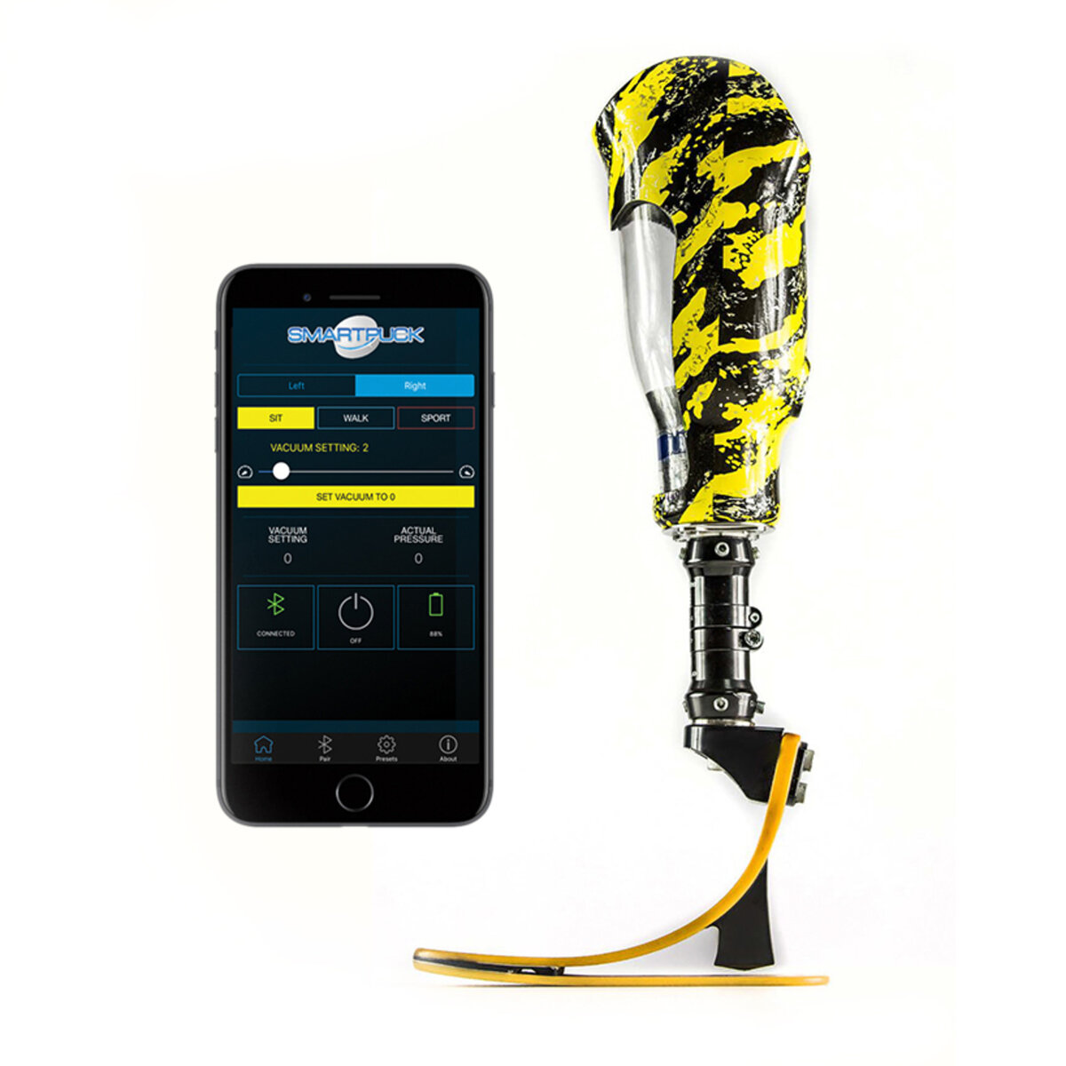 The SmartPuck™ is a modular socket computer system that utilizes an electronic vacuum pump to create negative pressure inside the prosthetic socket. This vacuum system is smart device compatible, allowing the user to quickly and easily set and adjust vacuum pressure settings of their prosthesis. It works great with thermoplastic or laminated socket configurations.