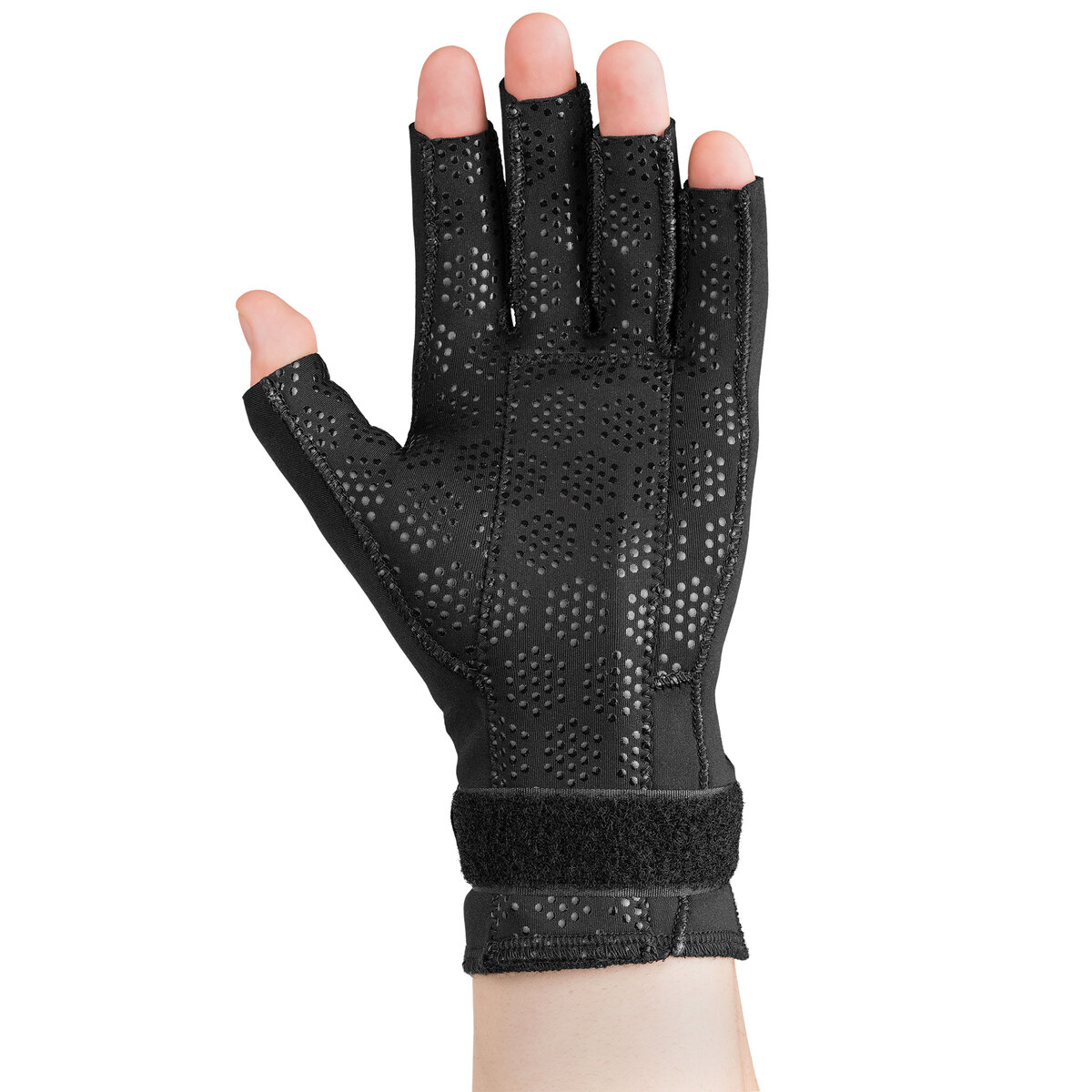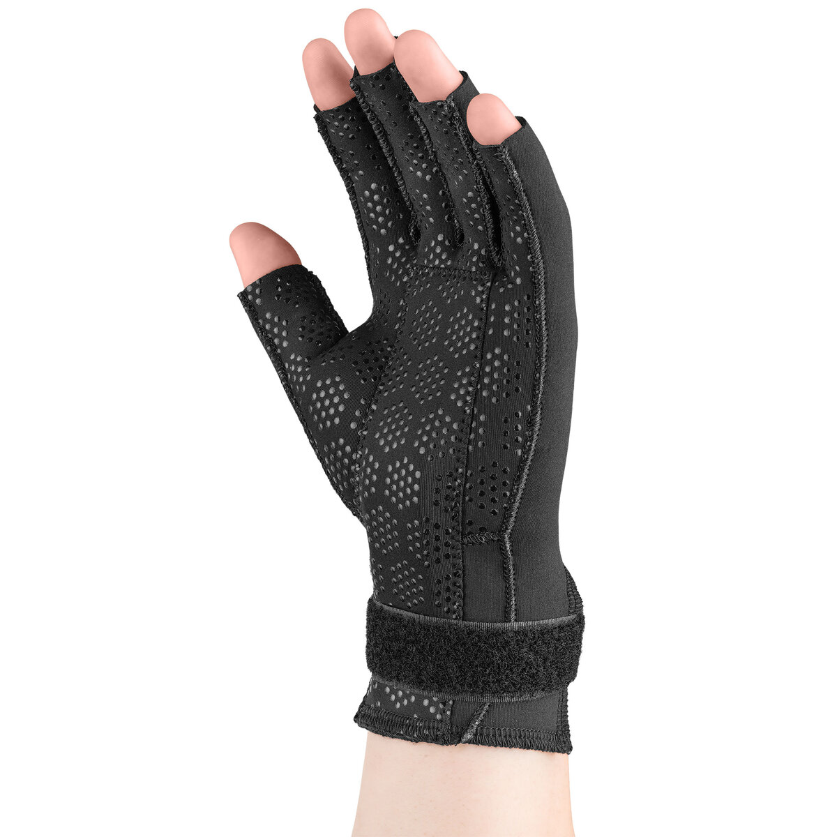 - Features a textured layer on the palm and palm side of fingertips to provide additional grip for everyday activities