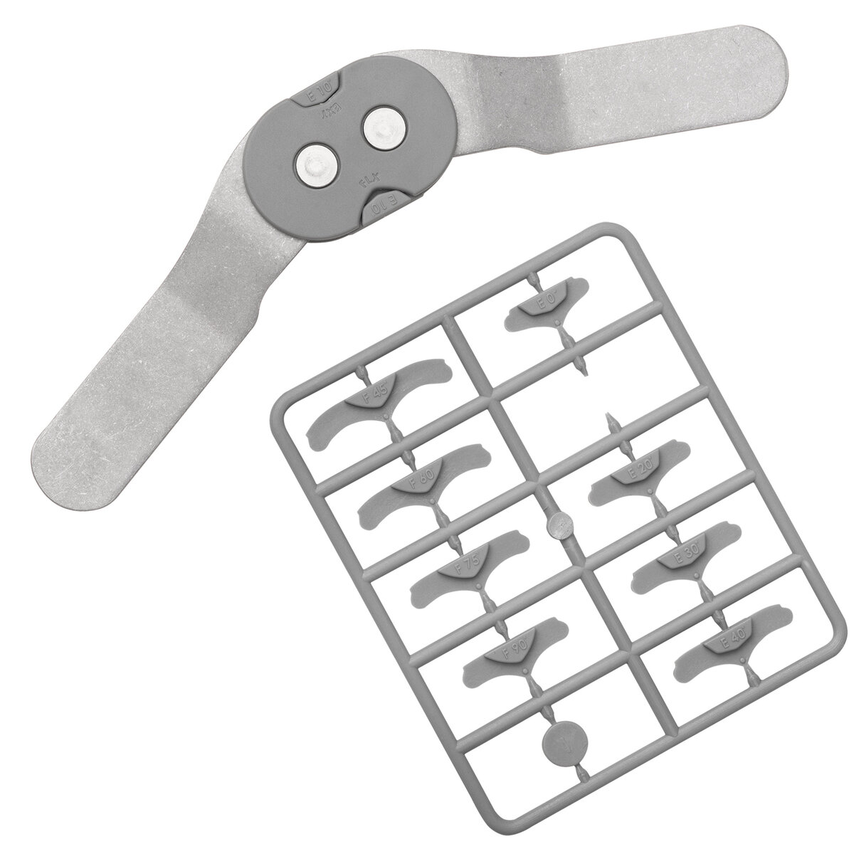- Removable ROM metal hinges have snap in flexion and extension stops ( 0°, 10°, 20°, 30°, 40°, 45°, 60°, 75° or 90°), no tools required!